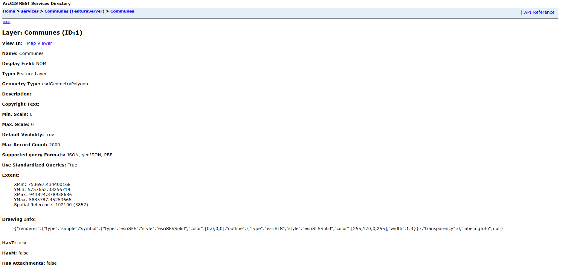 La zone d’information donne accès aux détails de la couche ainsi qu’à son service associé.