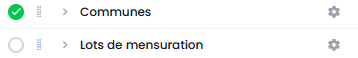 Le groupe "Communes" est affiché sur la carte, pas le groupe "Lots de mensuration".