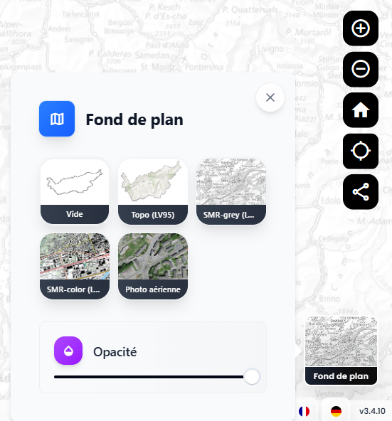 Il est cependant possible de changer le fond de plan, en cliquant sur l'icone en bas à droite de l'écran.