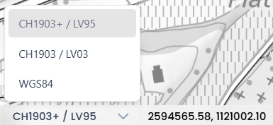 Les systèmes de coordonnées acceptés sont : CH1903+ / MN95, CH1903 / MN03 et WGS84.