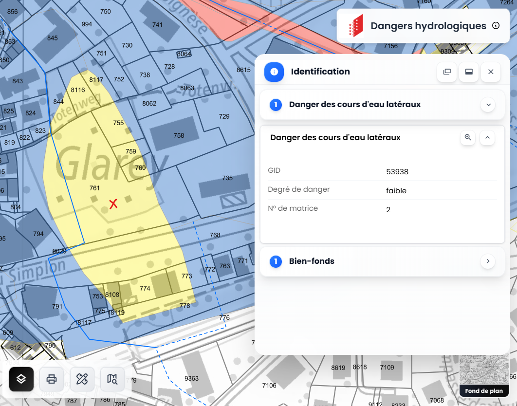 En faisant un clic gauche sur la carte, il est possible d'interroger la carte et obtenir des informations supplémentaires sur les entitées affichés.