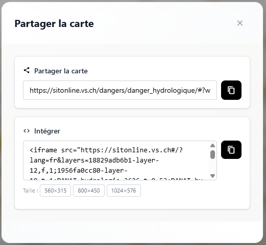 La fonction permet de diffuser facilement la vue actuelle de la carte à d’autres utilisateurs.