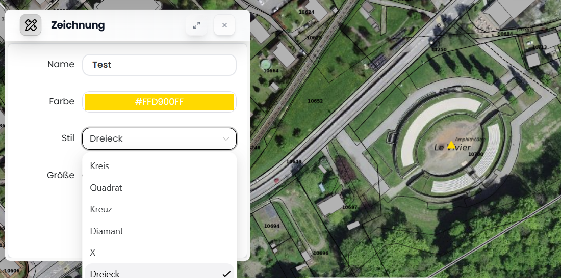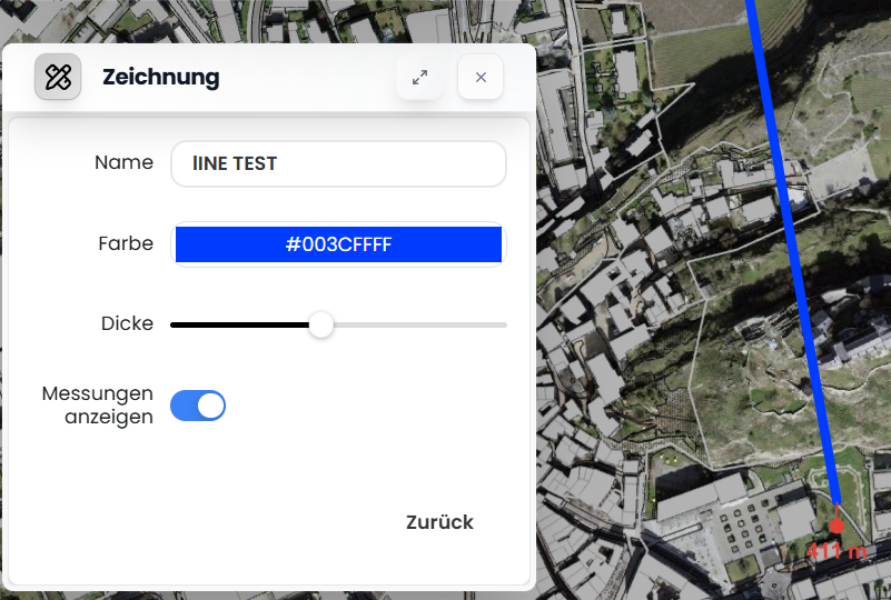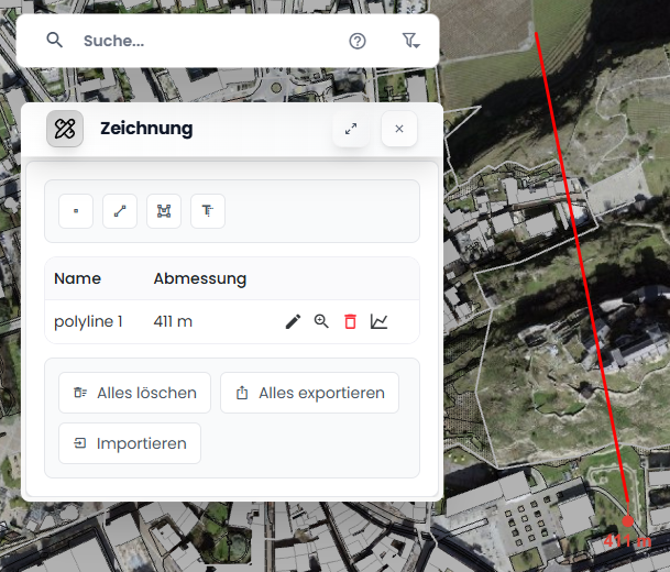Das Werkzeug Zeichnen ermöglicht es, Anmerkungen und Messungen direkt auf der Karte hinzuzufügen.