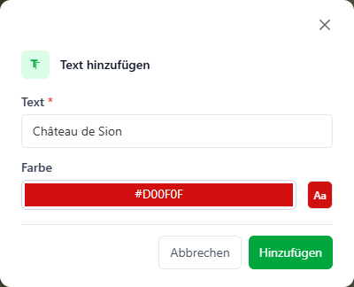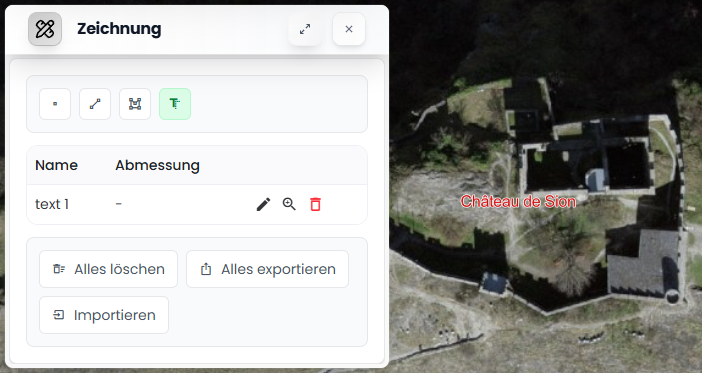 Das Werkzeug Text ermöglicht es, Anmerkungen direkt auf der Karte hinzuzufügen.