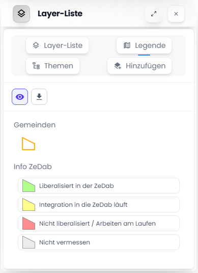 Der Tab Legende ermöglicht das Verständnis der Symbolisierung des aktiven Layers.
