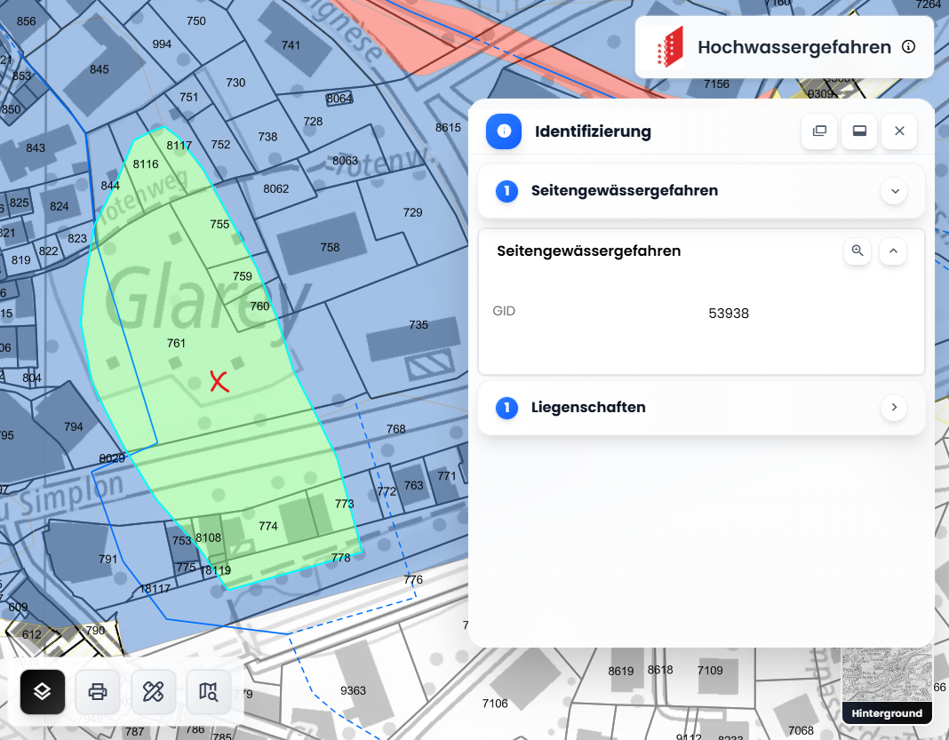 Durch einen Linksklick auf die Karte können Sie die Karte abfragen und zusätzliche Informationen über die angezeigten Objekte erhalten.